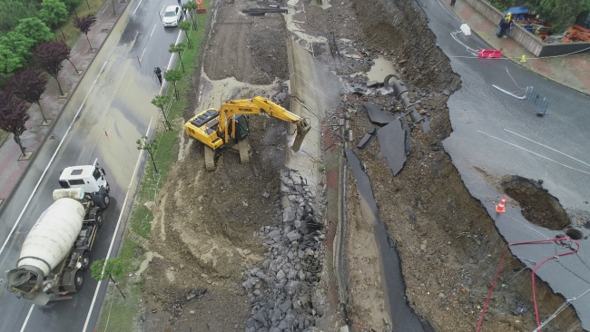 Şiddetli yağışın etkili olduğu ilçelerden biri de Başakşehir oldu. Şeyh Şamil Caddesi'ne bağlanan 13. Cadde'de yapılan yol genişletme çalışmaları sırasında istinat duvarı çöktü.