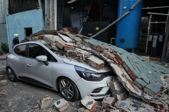 Patlamanın etkisiyle fabrikada yoğun duman oluşurken, iş yerinin bir duvarı da yıkıldı.
