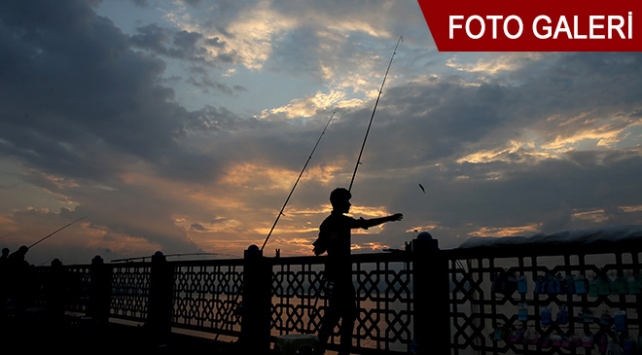 İstanbul'da etkili olan bulutlu havada sabahın ilk ışıkları ile Galata Köprüsü üzerindeki balıkçılar güzel görüntüler oluşturdu.