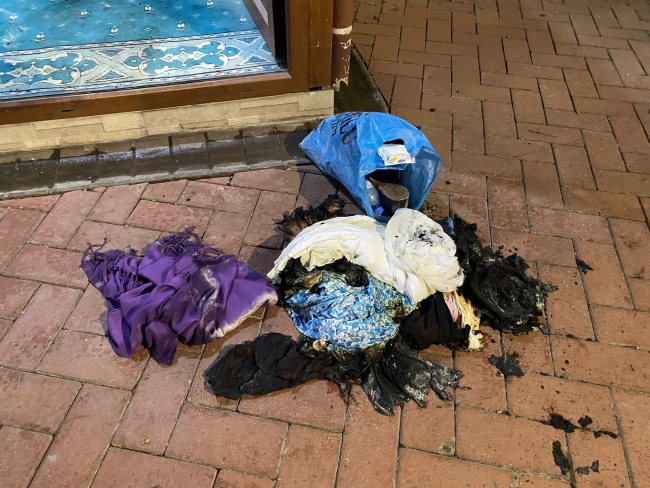 Bir kişinin caminin kadınlar bölümüne girdiği ve burada bulunan başörtüleri toplayıp ateşe verdikten sonra hızla uzaklaştığı görüldü.