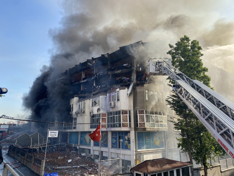 Yangın sırasında fabrikanın duvarlarında çökme yaşandı.