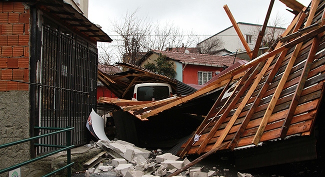 İstanbul'da etkili olan fırtına nedeniyle çok sayıda binanın çatısı uçtu.