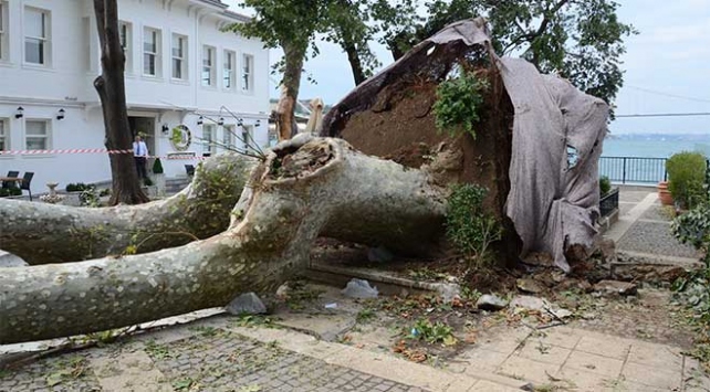 Bu arada, çınarın devrilmesi sonucu yakındaki kafede çalışan üç kişinin yaralandığı öğrenildi.