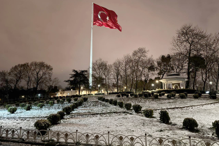 İstanbul'un sembol yerlerinden biri olan Çamlıca Tepesi de kar yağışının ardından kısmen beyaz örtüyle kaplandı.