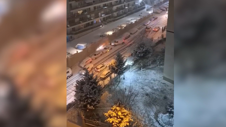 Pendik'te vatandaşlar kar topu oynayıp halay çekerken, Kartal Yakakent Caddesi'nde bir otomobilin kayarak kamyonete çarptığı anlar cep telefonu kamerasınca kaydedildi.