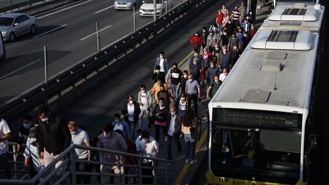 Haftanın ilk iş gününde işlerine gitmek için toplu taşıma araçlarını kullanmak isteyen vatandaşların duraklarda yoğunluk oluşturduğu gözlendi.