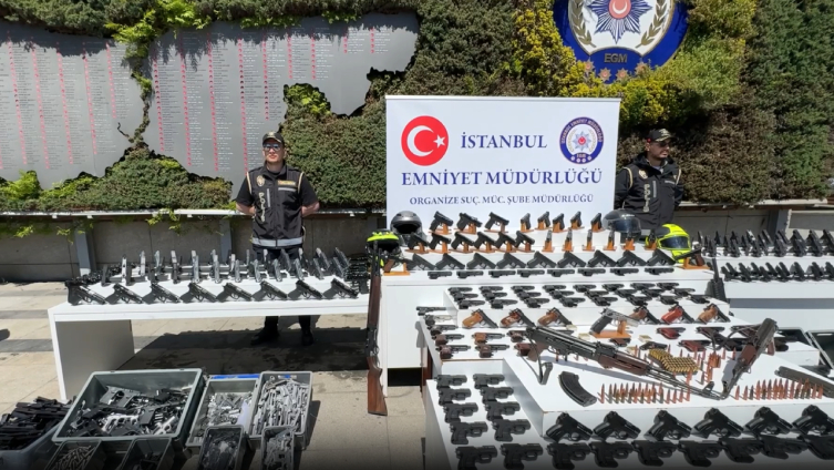 Operasyonlarda ele geçirilen silahlar, İstanbul Emniyet Müdürlüğünün Vatan Caddesi'ndeki yerleşkesinde sergilendi.