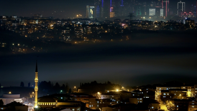 İstanbul'un birçok bölgesinde iki gündür etkili olan sis gece saatlerinde de etkisini artırarak devam etti.