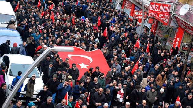 Taraftarlar ellerinde Türk bayraklarıyla eski belediye önünde toplanarak "Şehitler ölmez vatan bölünmez" ve "Teröre karşı omuz omuza" şeklinde slogan attı, Cumhuriyet Meydanı'na yürüdü.