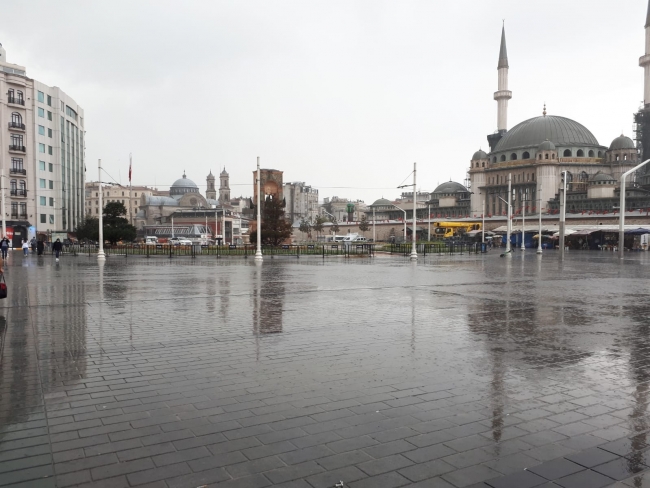 Taksim Meydanı'nın ise yağmur nedeni ile boş kaldığı görüldü. Yağmurun ara ara İstanbul’da akşam saatlerine kadar etkili olması bekleniyor.