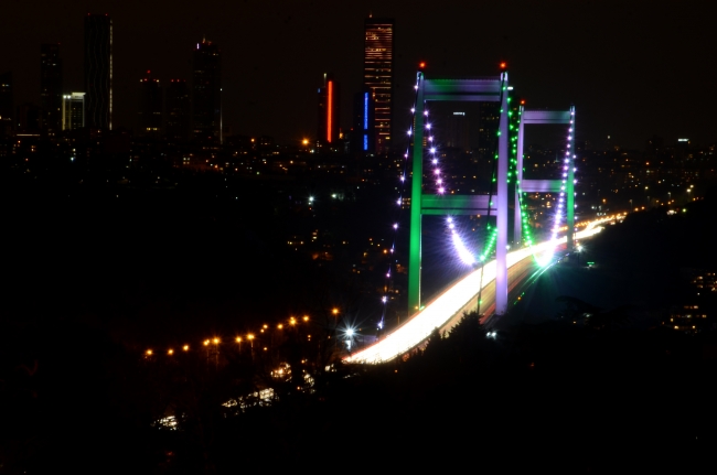 İstanbul'un köprüleri yeşil ve beyazla aydınlatıldı