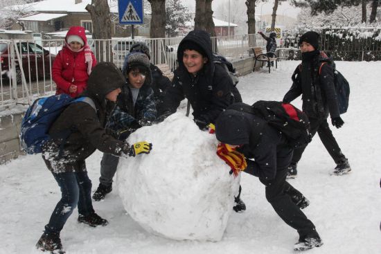 Kentte çarşamba gününden bu yana aralıklarla devam eden kar yağışı nedeniyle cadde ve sokaklar beyaza büründü. Belediye ekipleri, karla mücadele çalışmalarını aralıksız sürdürürken kar yağışını eğlenceye çeviren çocuklar kardan adam yaptı.
