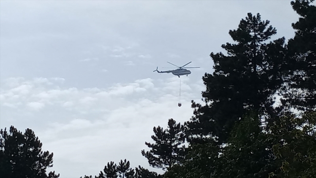 İhbar üzerine bölgeye Orman İşletme Müdürlüğüne bağlı 2 helikopter ve 5 arazözle müdahale edildi.