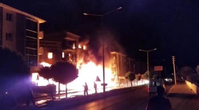Çalışmalar sonucu alevler söndürüldü. 4 katlı bina kullanılamaz hale gelirken, bina önündeki iki otomobil de hasar gördü.