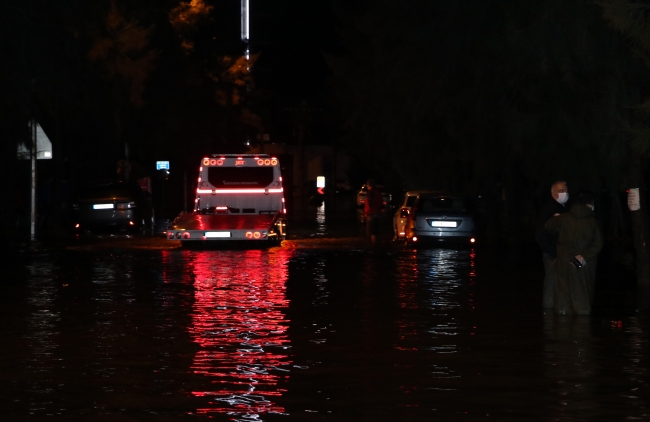 Kentte 4 gündür aralıklarla devam eden ve bu gece etkisini iyice artıran yağmurun ardından Karşıyaka ilçesinde Mavişehir Mahallesi'nde deniz taştı.