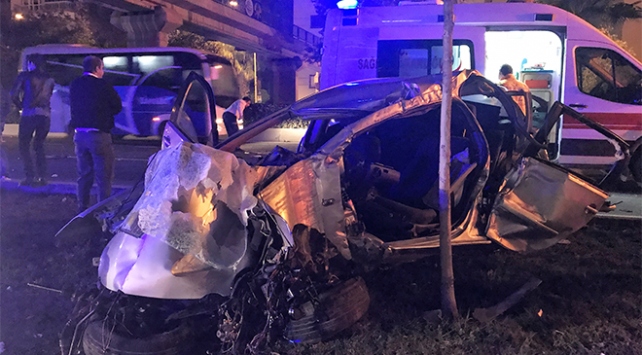 İzmir'in Bornova ilçesinde içinde 5 polis memurunun bulunduğu araç, sabah saatlerinde Kazım Dirim mahallesi Ankara Caddesi'ndeki bir beton direğe çarptı.