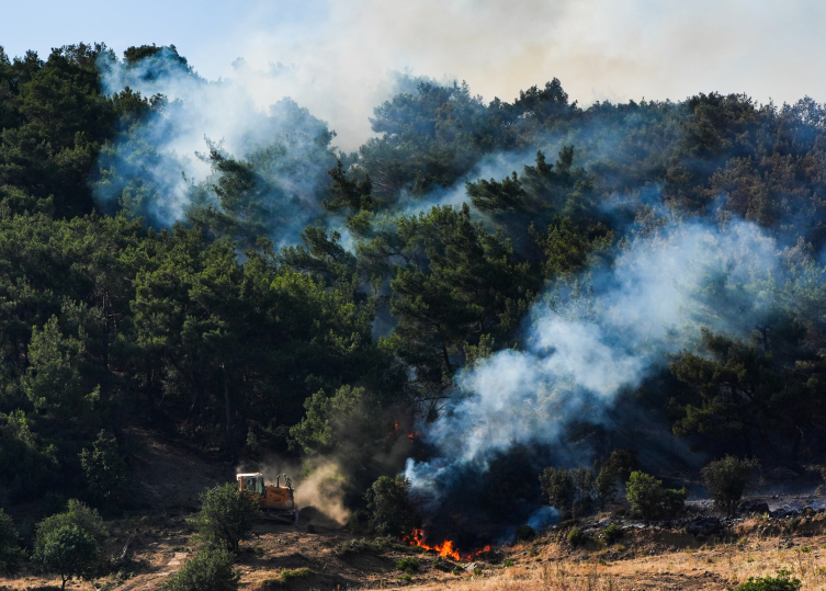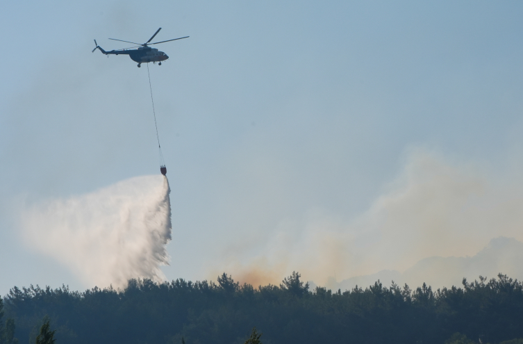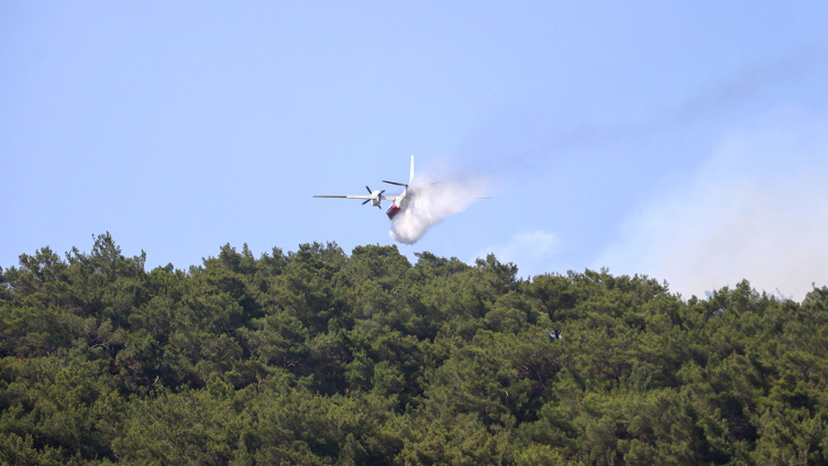 İhbar üzerine bölgeye İzmir Orman Bölge Müdürlüğüne bağlı 6 uçak, 9 helikopter, 25 arazöz, 8 su ikmal aracı, 4 dozer ve 4 yer ekibi sevk edildi.