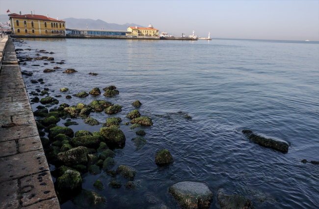 [Fotoğraf: AA]Denizin çekilmesi, Konak ilçesindeki iskelenin bulunduğu sahil şeridinde de görüldü. Kıyı kesiminde kayalıklar ve yosunların ortaya çıktığı gözlendi.