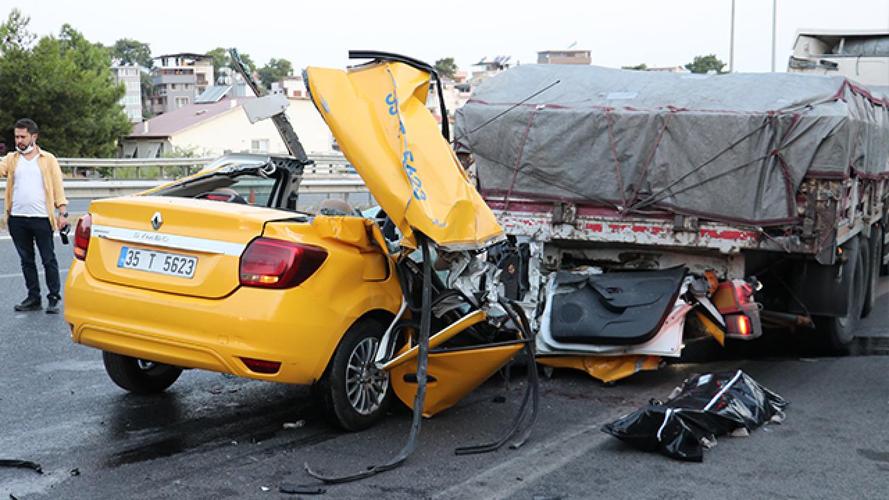 Alınan bilgiye göre, İzmir-Çeşme otoyolu Balçova viyadüğü yakınlarında seyir halinde olan Engin B. (43) idaresindeki 35 T 5623 plakalı taksi, önünde seyreden Selman A. (38) yönetimindeki 35 KC 1060 plakalı tırın dorse kısmına çarptı.