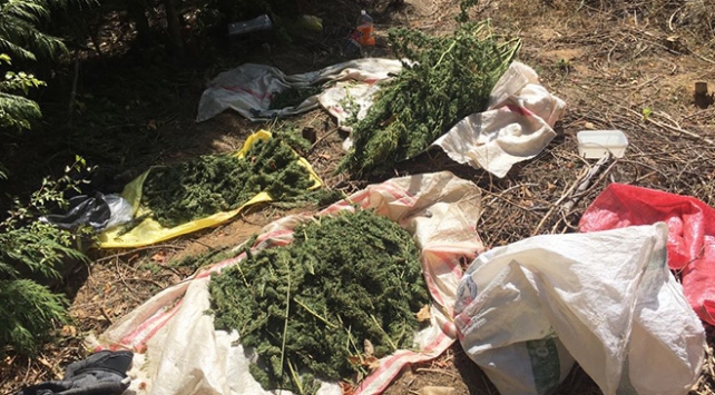 F.K'yi de gözaltına alan ekipler, evin bahçesinde yaptıkları aramada ise bin 442 kök Hint keneviri ile 70 kilo 430 gram kurutulmuş esrar, hassas terazi ve bir av tüfeği ele geçirdi.