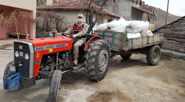 Koyulhisar Kaymakamı Çağlar Partal'ın talimatıyla satın alınan samanlar, İlçe Jandarma Komutanlığında görevli asker Mahmut Gökçe tarafından traktörle Basmakçı'nın ahırına götürüldü.