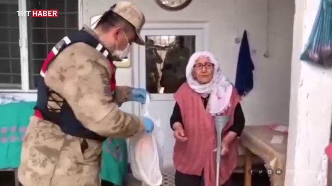 Jandarma ekipleri vatandaşların ihtiyaç taleplerini de yerine getirirken, yardım paketlerini de yine yaşlıların evlerine ulaştırıyorlar.