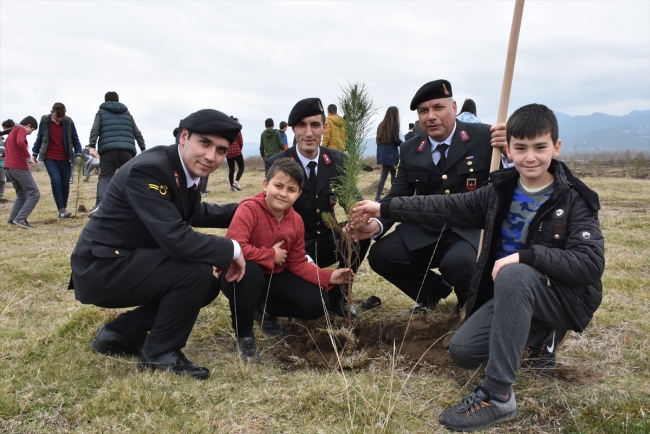 Daha sonra Albay Ağaoğlu, jandarma personeli ve öğrenciler tarafından 1919 fidan toprakla buluşturuldu.