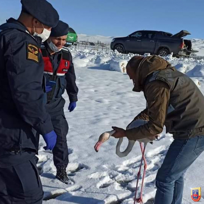 Van İl Jandarma Komutanlığınca, Boyalı Mahallesinde bitkin halde bulunan flamingoya ilk müdahale devriye personelimiz tarafından yapılmış, tedavi işlemlerinin ardından misafirimiz, Doğa Koruma ve Milli Parklar Müdürlüğü görevlilerine teslim edilmiştir. pic.twitter.com/2E3XnpEsZ2