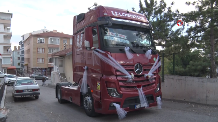 Emre Seçkin de çok mutlu olduklarını dile getirirken, "İkimiz de tır şoförü olduğumuz için gelin arabamız ekmek teknemiz olsun istedik. Eşimin firması da buna müsaade etti, tabii ki gelin arabasını da eşim sürdü." dedi.