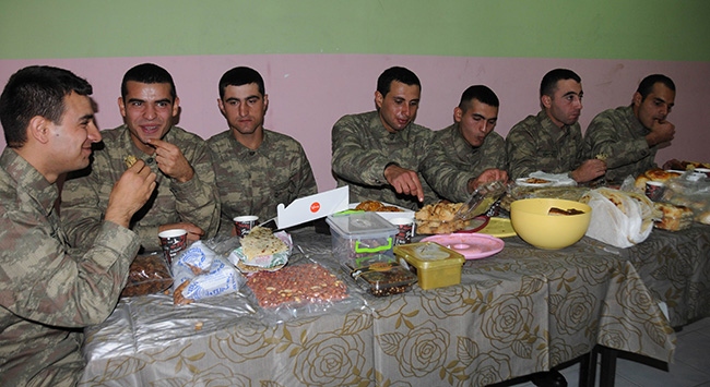 Yiyecekleri yerken bir yandan da el yazısıyla yazılan, üzerinde asker ve Türk bayrağı resimleri bulunan mektupları okuyan güvenlik güçleri, duygusal anlar yaşadı.