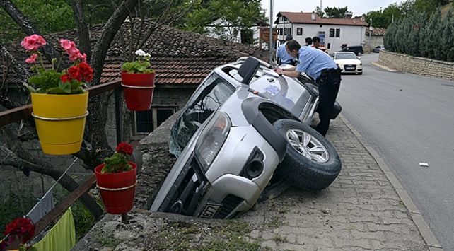 Alınan bilgiye göre, Hacı Halil Mahallesi Mimar Sinan Caddesi'nden Bartın istikametine giden Çetin Değirmenci yönetimindeki 06 DH 4877 plakalı kamyonet, yolla arasında kot farkı bulunan bir evin merdivenlerine düştü.