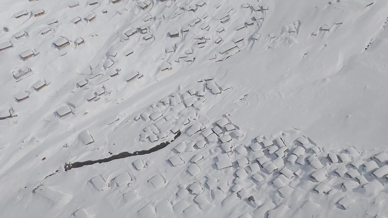 [Fotoğraf: DHA]7 kişilik grup, kar kalınlığının yer yer ev seviyesini aştığı yaylada tulum ezgileriyle gezinti yaptı.