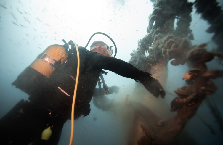 Dalış yapılan noktalarda tespit edilen hayalet ağları temizlemek üzere programlı dalışlar yapan dalış eğitmeni Hamdullah Aras ve ekibinin son adresi de Karaburun açıklarındaki 9 Eylül Vapuru batığı oldu.