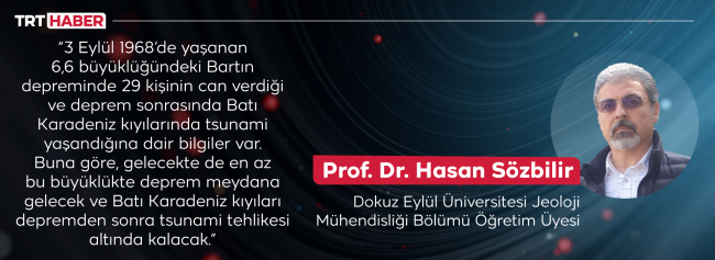 “Batı Karadeniz havzasındaki denizaltı fayından kaynaklanan Bartın depreminde 29 kişinin can verdiği ve deprem sonrasında Batı Karadeniz kıyılarında tsunami yaşandığına dair bilgiler var. Buna göre, gelecekte de en az bu büyüklükte deprem meydana gelecek ve Batı Karadeniz kıyıları depremden sonra tsunami tehlikesi altında kalacak.”