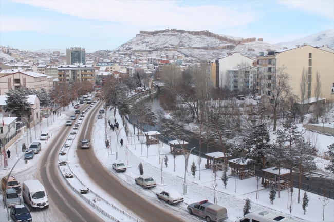 Bayburt'ta iki gün önce başlayan ve aralıklara devam eden kar nedeniyle kent merkezi beyaza büründü.
