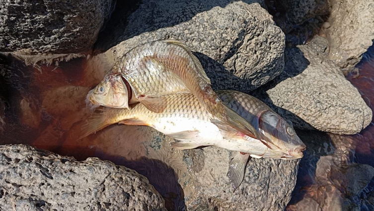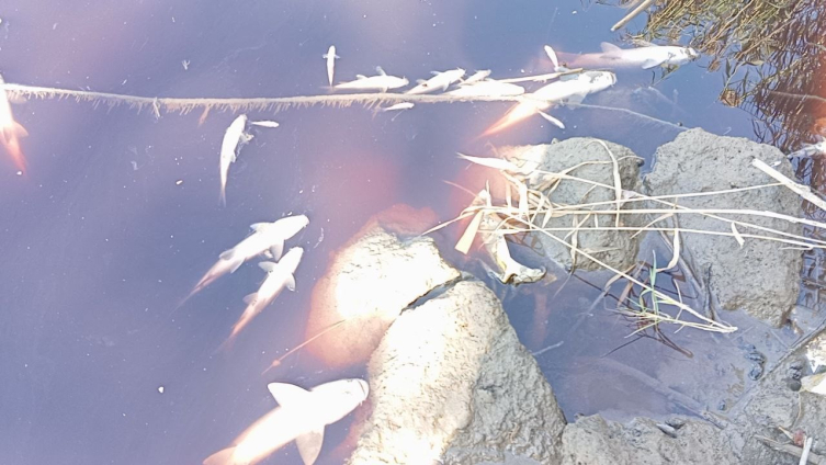 Kimyasal atık kaynaklı kötü koku, çevredeki yerleşim yerlerine yayılırken, nehirdeki yüzlerce balık öldü.