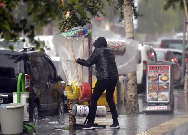 [Fotoğraf: AA]Yağmura hazırlıksız yakalanan bazı vatandaşlar iş yerleri ve çatı altlarına sığındı.