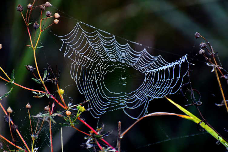 Sabah araç camları, bitkiler ve örümcek ağları kırağıyla kaplandı.