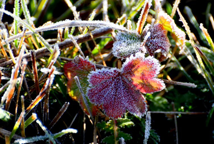 Kırağı tutan bitkiler, güzel görüntü oluşturdu.