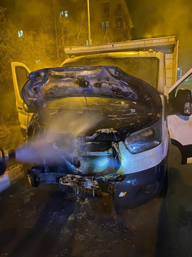 Ahmet Arslan Caddesi'ndeki Kafkas Üniversitesi yerleşkesi yakınlarında park halinde olan M.A'ya ait kamyonet, henüz belirlenemeyen nedenle alev aldı.