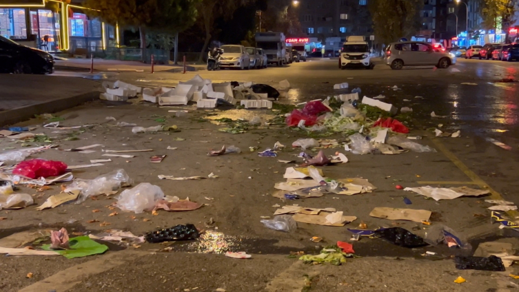 [Fotoğraf: DHA]Pazarcıların bıraktığı meyve sebze artığı ile ambalajlar dolayısıyla yayalar ve araçlar çöplerin arasından geçip yola devam etti.
