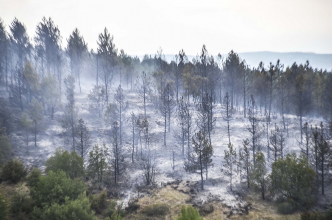 Ekiplerin havadan ve karadan müdahalesiyle kontrol altına alınan yangında 3 dönüm alan zarar gördü.