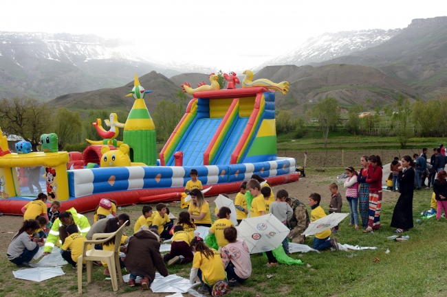 Beytüşşebap kaymakamlığı ve belediyesi, Çatak ilçesine 28 kilometre uzaklıkta bulunan Kıyıcak Mahallesi'ne şişme oyun parkı kurdu, 3 bin uçurtma dağıttı.