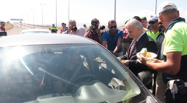 Görev yapan polis ve jandarma ekipleri ile tek tek bayramlaşan Kamçı, durdurulan araçlardaki vatandaşlarla sohbet etti. Sürücülere çikolata ikram eden Kamçı, trafik kurallarına uymaları ve dikkatli gitmeleri konusunda uyardı. Kamçı, bir sürücünün ehliyet ve ruhsatını kontrol etti.