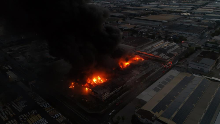 Polis ekipleri çevrede güvenlik önlemi alırken, itfaiye ekipleri de fabrikayı saran yangını söndürmek için çalışmalarını sürdürüyor.