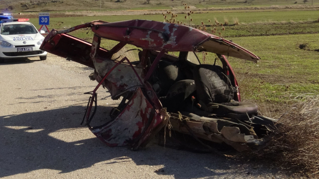 Kuzpınar yönetimindeki otomobil, çarpışmanın etkisiyle ikiye bölündü.