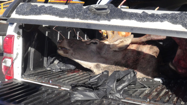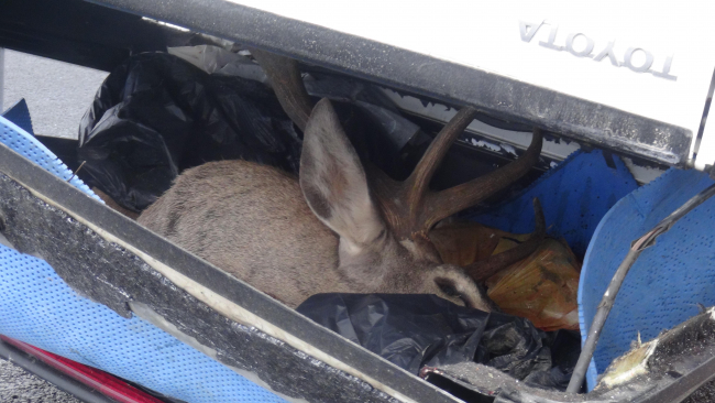 [Fotoğraf: DHA]Bu sırada aracın bagajında, kızıl geyik olduğunu gören jandarma, Doğa Koruma ve Milli Parklar Bölge Müdürlüğü'ne bilgi verdi. Gelen görevliler, kamyonette, av sırasında kullanıldığı tahmin edilen çok sayıda mermiye ve erkek kızıl geyiğe el koydu.