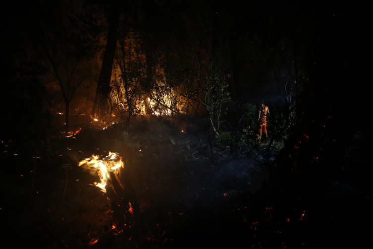 Gece görev yapabilecek uçakların olmaması nedeniyle havadan müdahale yapılmadığını söyleyen Topaloğlu, "Orman Bölge Müdürlüğünün, belediyenin tüm araçları burada, TOMA'lar da geliyor ancak bölgeye karadan ulaşımda sıkıntı yaşanıyor. Yol olmadığı için araçlar ormanlık alana giremiyor" diye konuştu.
