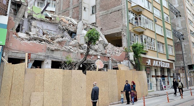 İş makinelerinin de çalıştığı sırada bitişikteki apartmanın birinci katında bulunan Ethem Emre Güngör'e ait dairenin salon duvarı yıkıldı.