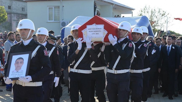 Kilis'e dün Suriye'den roket mermisi atılması sonrası patlamamış mühimmatın imhası sırasında şehit düşen polis memuru Murat Mimiroğlu'nun cenazesi, Giresun'da toprağa verildi.